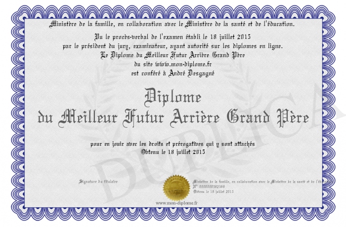 Envoyez par email votre Diplôme du Meilleur Futur Arrière Grand Père personalisé