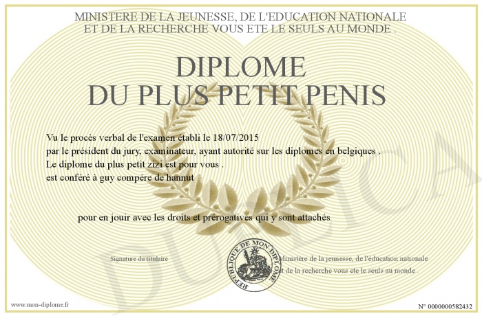 Envoyez par email votre Diplôme du plus petit penis personalisé
