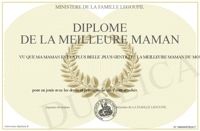 Envoyez par email votre Diplôme dE LA MEILLEURE MAMAN personalisé