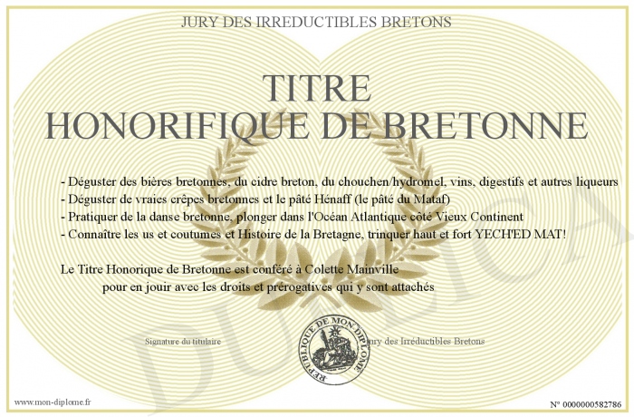 Envoyez par email votre Titre Honorifique de Bretonne personalisé