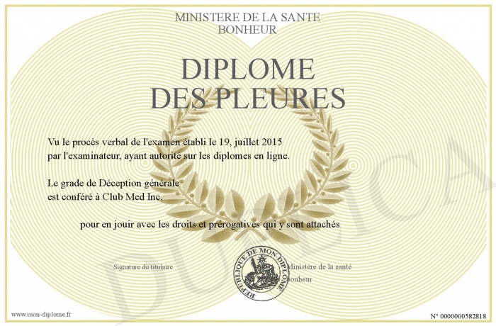 Envoyez par email votre Diplôme des pleures personalisé
