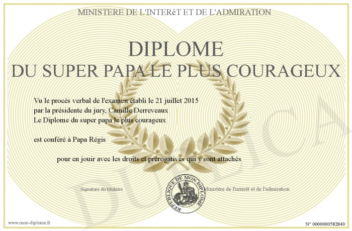 Envoyez par email votre Diplôme du super papa le plus courageux personalisé