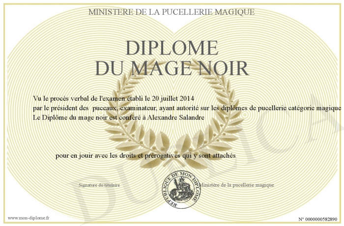 Envoyez par email votre Diplôme du Mage Noir personalisé