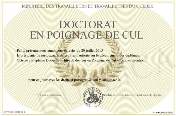 Envoyez par email votre Doctorat en Poignage de Cul personalisé