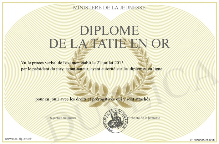Envoyez par email votre Diplôme de la tatie en or personalisé
