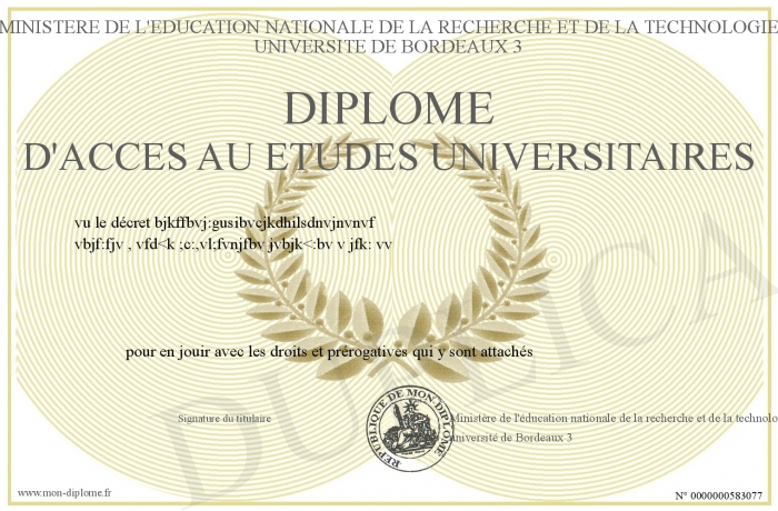 Envoyez par email votre Diplôme d'accés au etudes universitaires personalisé