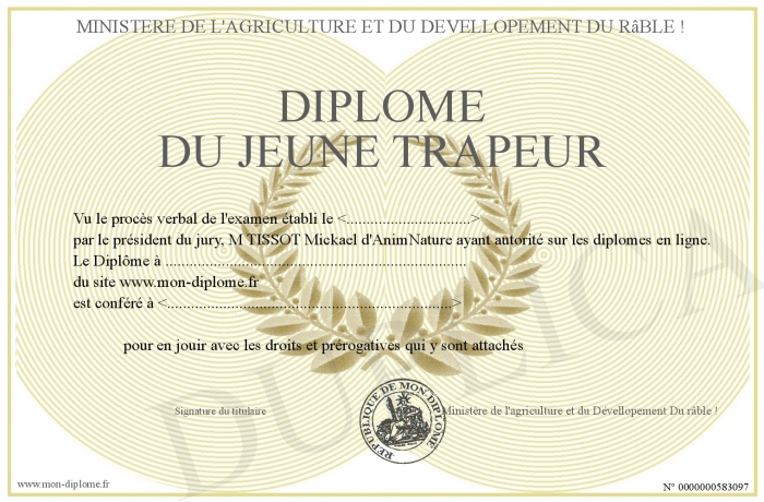 Envoyez par email votre Diplome du Jeune Trapeur personalisé