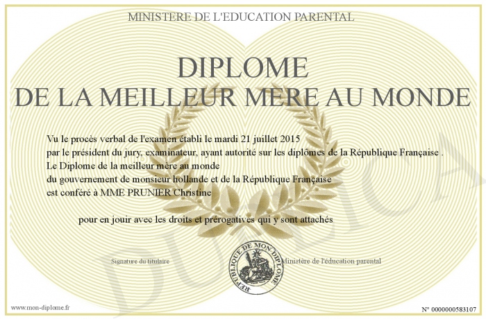 Envoyez par email votre Diplôme de la meilleur mère au monde personalisé