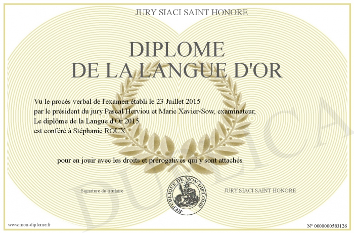 Envoyez par email votre Diplôme de la Langue d'Or personalisé