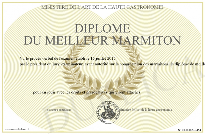 Envoyez par email votre Diplome du meilleur marmiton personalisé