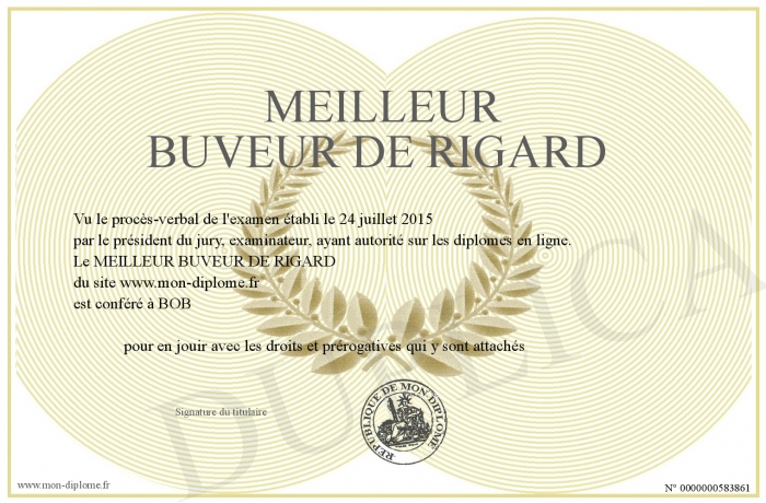 Envoyez par email votre MEILLEUR BUVEUR DE RIGARD personalisé