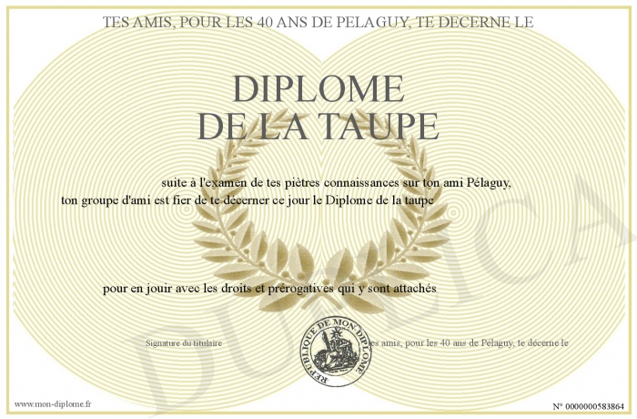 envoyé par le tes amis, pour les 40 ans de Pélaguy, te décerne le !