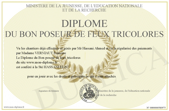 Envoyez par email votre Diplome du Bon poseur de feux tricolores personalisé