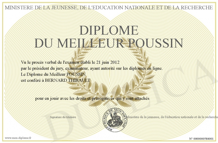 Envoyez par email votre Diplôme du Meilleur POUSSIN personalisé