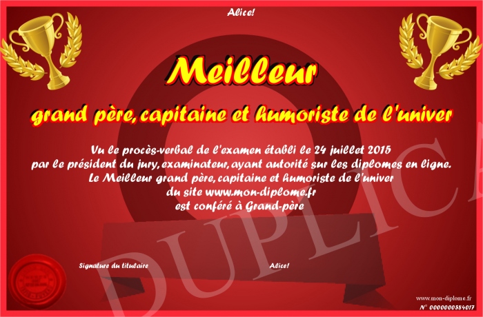 Envoyez par email votre Meilleur grand père, capitaine et humoriste de l'univer personalisé