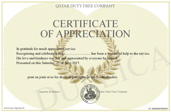 Envoyez par email votre Certificate Of Appreciation personalisé