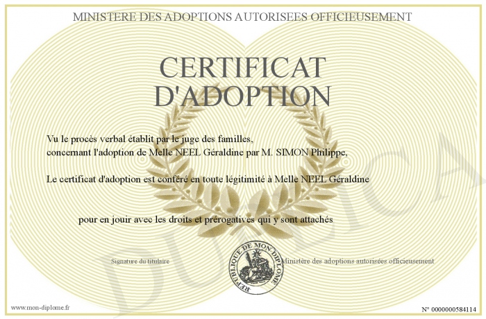 envoyé par le Ministère des adoptions autorisées officieusement !