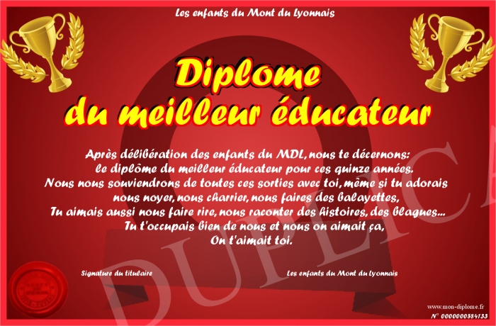 Envoyez par email votre Diplôme du meilleur éducateur personalisé