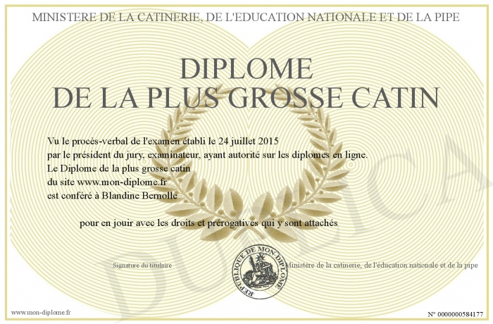 Envoyez par email votre Diplôme de la plus grosse catin personalisé