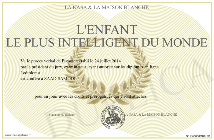 Envoyez par email votre L'enfant le plus intelligent du monde personalisé