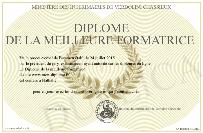 Envoyez par email votre Diplôme de la meilleure formatrice personalisé