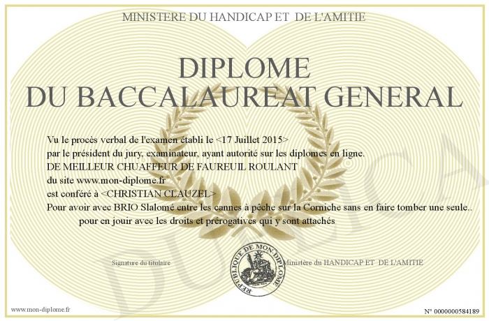 Envoyez par email votre Diplôme du baccalaureat général personalisé