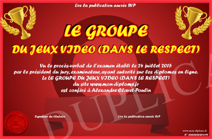 Envoyez par email votre LE GROUPE DU JEUX VIDEO (DANS LE RESPECT) personalisé