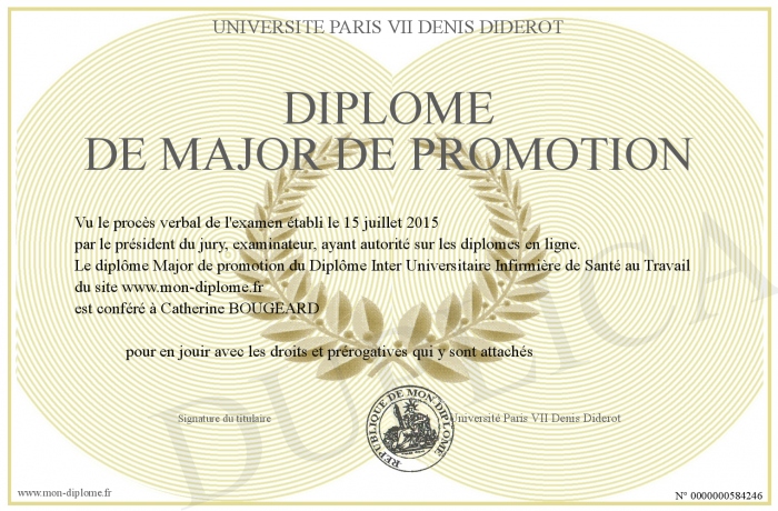 Envoyez par email votre Diplôme de Major de Promotion personalisé