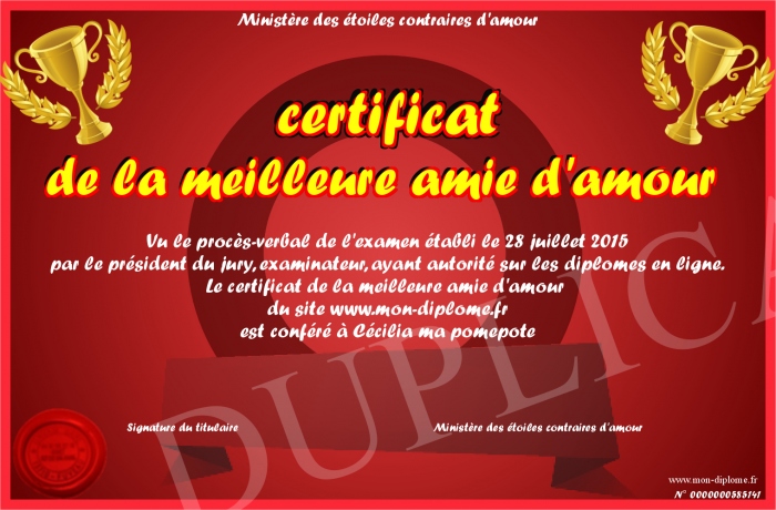 Envoyez par email votre certificat de la meilleure amie d'amour personalisé