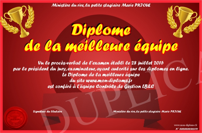Envoyez par email votre Diplome de la meilleure équipe personalisé