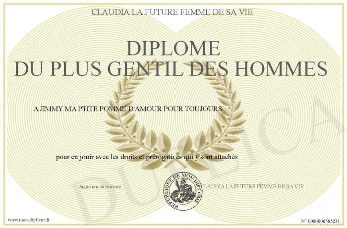 Envoyez par email votre DIPLOME DU PLUS GENTIL DES HOMMES personalisé