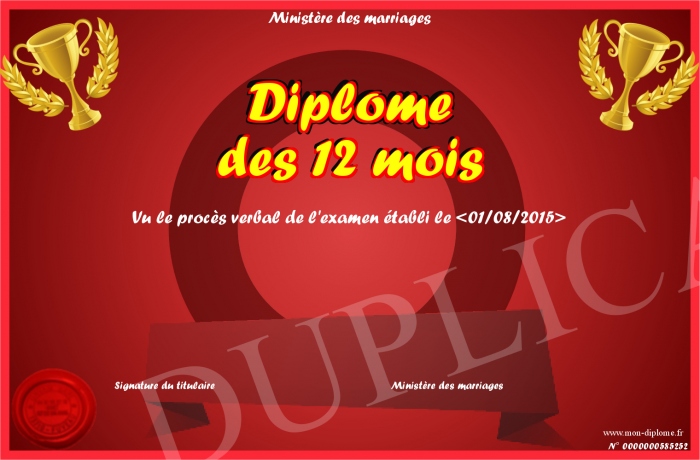 Envoyez par email votre Diplôme des 12 mois personalisé