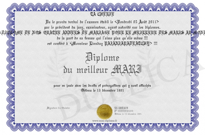 Envoyez par email votre Diplôme du meilleur MARI personalisé