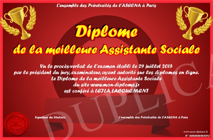 Envoyez par email votre Diplôme de la meilleure Assistante Sociale personalisé