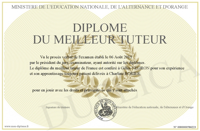 Envoyez par email votre Diplôme du meilleur tuteur personalisé