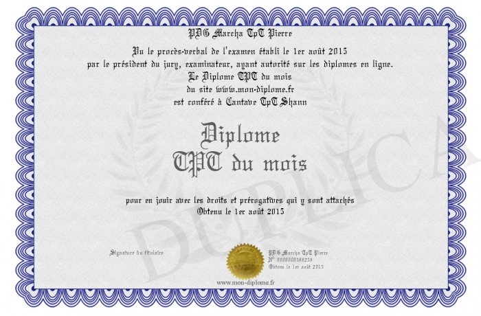 Envoyez par email votre Diplôme TPT du mois personalisé
