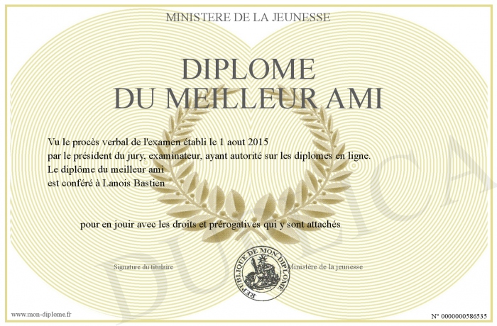 Envoyez par email votre Diplôme du meilleur ami personalisé