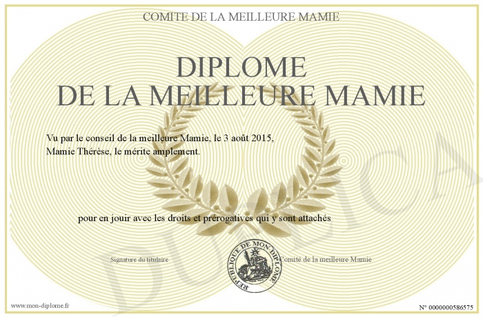 Envoyez par email votre diplôme de la meilleure Mamie personalisé