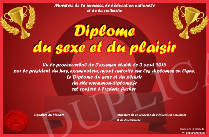 Envoyez par email votre Diplôme du sexe et du plaisir personalisé