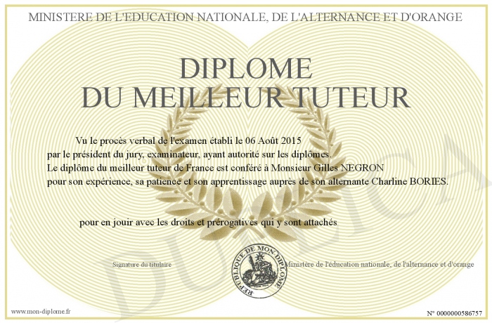 Envoyez par email votre Diplôme du meilleur tuteur personalisé