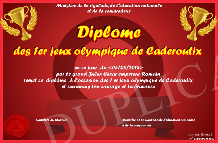 Envoyez par email votre Diplôme des 1er jeux olympique de Caderoutix personalisé