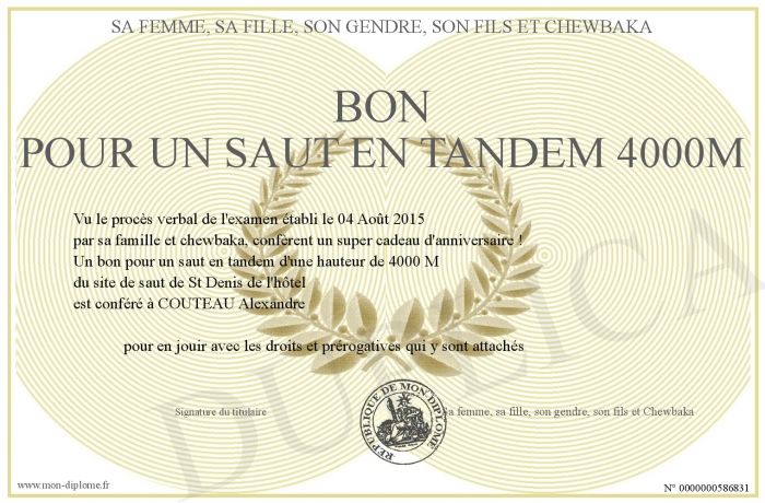 Envoyez par email votre Bon pour un saut en tandem 4000m personalisé