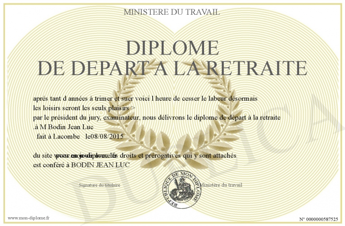 Envoyez par email votre Diplôme de depart a la retraite personalisé