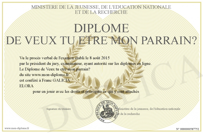 Envoyez par email votre Diplôme de Veux tu etre mon parrain? personalisé