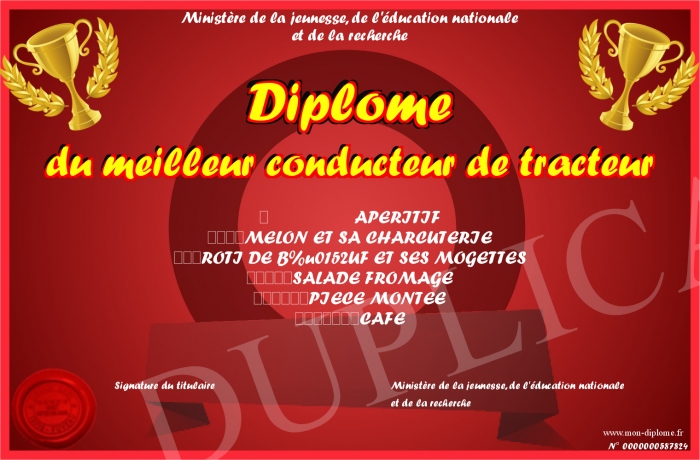 Envoyez par email votre Diplôme du meilleur conducteur de tracteur personalisé