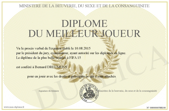 Envoyez par email votre Diplôme du Meilleur joueur personalisé