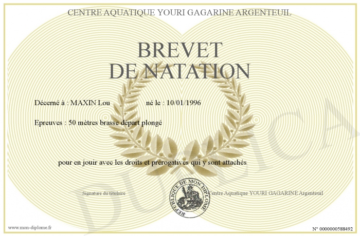 envoyé par le Centre Aquatique YOURI GAGARINE Argenteuil !