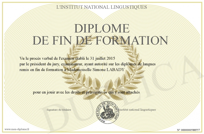 Envoyez par email votre Diplôme de fin de formation personalisé