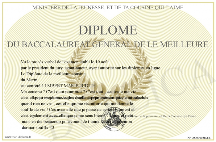 envoyé par le Ministère de la jeunesse, et De ta Cousine qui t'aime !