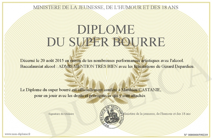 Envoyez par email votre Diplôme du super bourré personalisé